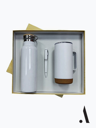 Give your clients and employees thoughtful branded gifts like mugs, pens, bags, and tech items.